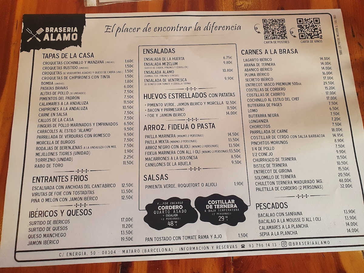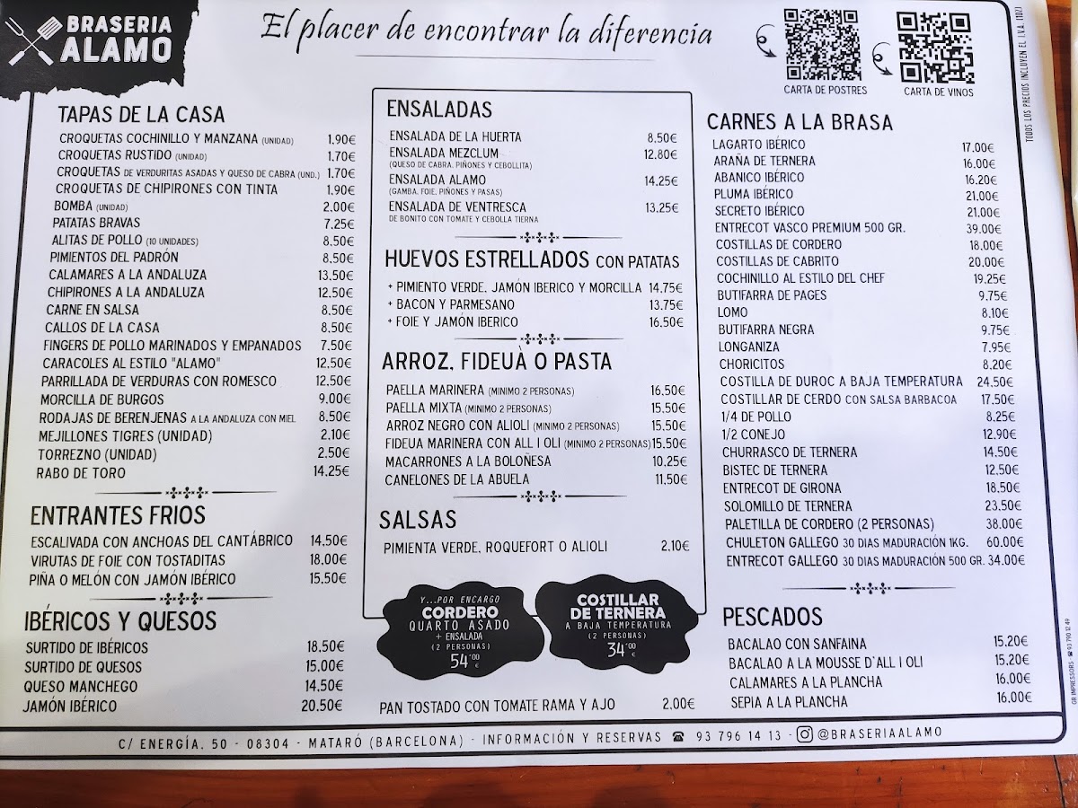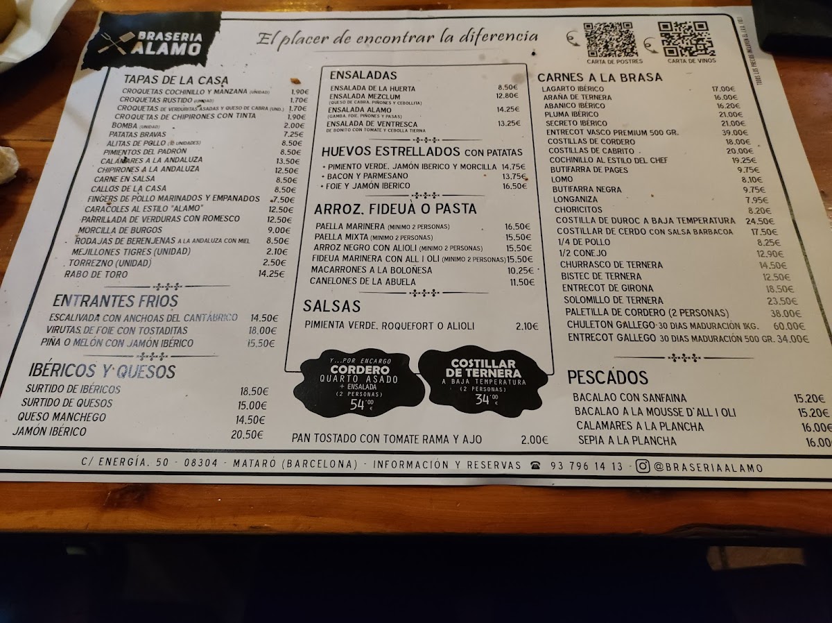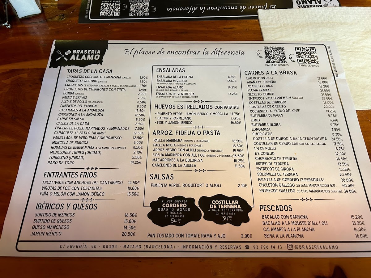 Welcome to Braseria Alamo, a charming eatery nestled in the heart of Mataró, Barcelona. Known for its warm ambiance and exceptional service, this restaurant caters to families and meat lovers alike. Diners rave about the exquisite selection of premium meats, with highlights including the mouthwatering chuletón gallego and succulent costillas de cabrito that are cooked to perfection. The unique experience of sizzling your meat on a hot stone adds an interactive twist to each meal.